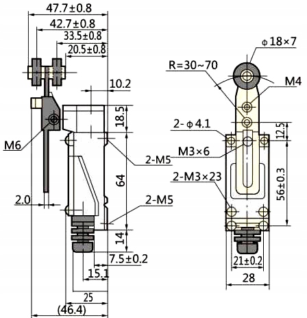 - Rodzaj głowicy i ramienia: z dźwignią (rolka fi 18mm)